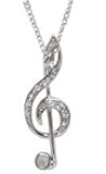 Beautiful Ice Crystal Musical Note Treble Cleff Charm Necklace Silver Tone