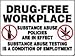 DRUG-FREE WORKPLACE SUBSTANCE ABUSE POLICIES ARE IN EFFECT SUBSTANCE ABUSE TESTING IS A CONDITION OF EMPLOYMENT (W/GRAPHIC) 18″ x 24″ Adhesive Dura-Vinyl Sign